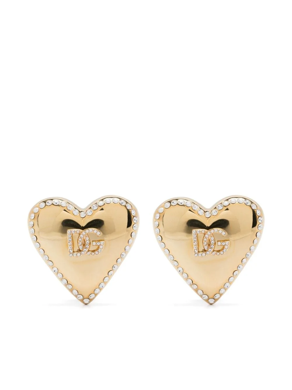 heart-motif clip-on earrings Highlights - Gold-tone - Polished finish - Heart motif - Crystal embellishment - Applique logo to the front - Clip-on design - These earrings come as a pair. Made in Italy SIZE & FIT Model measurements Height 5 ft 9 in(1.75 m) Bust/Chest 31.88 in(81 cm) Hips 34.64 in(88 cm) Waist 24.01 in(61 cm) Measurement HEIGHT 1.37 in(3.5 cm) Weight (single earring) 15 g(15 g) WIDTH 1.37 in(3.5 cm)