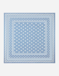 In the FW 24/25 DNA Collection, the rules of classic tailoring have been reworked with an innovative feel. New raschel weave techniques feature on micro-jackets and coats, and original textures are woven on trench coats, skirts, jacquard suits and shirts. The color palette made up of Nero Sicilia black, Milky White and Ocean Blue is also original. The iconic bags in fine nappa leather and “Pyton FC Machine” finish off the looks. Silk twill foulard with all-over DG logo print: • Light blue • Hand-sewn hem • “Dolce&Gabbana” logo • Measurements: 90 x 90 cm • Made in Italy External composition: 100% Silk