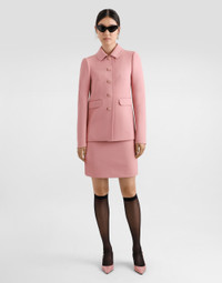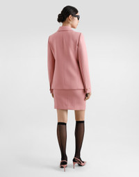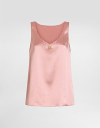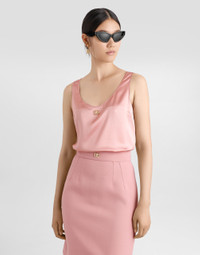 The Women’s DNA Collection is introducing a new side to femininity, which comes in shades of rose quartz, poised between sheerness and opacity, lightness and structure, formality and sensuality. Geometric Dolce Jackets, jacquard pajamas and floral brocade dresses intertwine with ultra-romantic designs. The DG print becomes an iconic statement, while Cordonetto lace and hints of Sicily Black embody the essence of a determined yet romantic femininity. Silk satin tank top with the metal DG logo pin: • Pink • Plunging round neck • Sleeveless • Regular fit • The piece measures 57.5 cm from the center back on a size IT 40 • The model is 175 cm tall and wears a size IT 40 • Made in Italy External composition: 93% Silk 7% Spandex