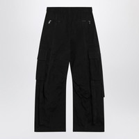 Dolce & Gabbana cargo trousers in black waxed cotton fabric featuring a low waist, front slanted pockets with vertical cuts, back zip pockets with vertical cuts, pleated flap cargo pockets on the sides, elasticated waistband with drawstring, and a washed, crinkled look. Gender: Women Material: 45% Cotton - 39% Polyester - 16% Polyamide Color: Black Made in: Italy Product ID: FTDEHTHUMS8/R_DOLCE-N0000 *Import tax/duty will be calculated at checkout (If applicable)