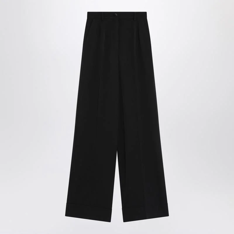 Dolce & Gabbana black wool blend trousers, featuring a high waist with belt loops, front closure with zip and button, two side welt pockets, two back welt pockets with button, and pleats at the front. Gender: Women Material: 97% Virgin wool - 3% Elastane Color: Black Made in: Italy Product ID: FTBM0TGDC7Q/R_DOLCE-N0000 *Import tax/duty will be calculated at checkout (If applicable)