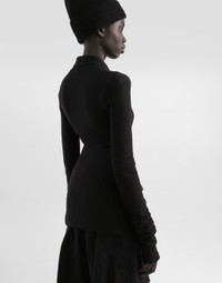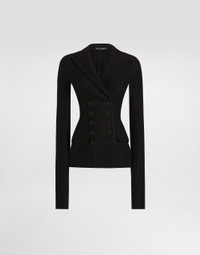 In the Fall/Winter 2025 Fashion Show Collection, shearling jackets, in fur-free versions, reveal slip dresses and create contrast' plays while denim welcomes fabric or Leo print inserts. Sweatshirts are the result of long experimentation with volumes. Evening looks become precious thanks to dresses with special embroideries and luminous touches of sequins and crystals. Sheepskin inserts also unite hats, shoes, and bags, including those with pockets. This jacket represents the ideal of modern elegance with a touch of timeless classic. Perfect for a sophisticated look on any occasion. Double-breasted jacket in wool cloth: • Black • Slim fit • Peak lapels • With buttons • With side panel • Long sleeves without slit • Unlined • The model is 175 cm tall and wears size 40 IT • Made in Italy External Composition: 100% Virgin Wool