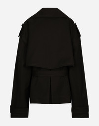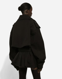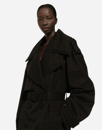 In the “WOMAN SS 24” Collection, the imagery of old Sicily interacts with the masculine, with sensual shapes, lace, nude tones and delicate overlays, to create pieces that move amid clean silhouettes, the elegance of the 1960s, the contrasts of black and white and luxurious textures. The designers are reworking their signature style and their iconic Sicilia black color to convey an aware, seductive and confident Sicilian WOMAN who is imbued with sensuality. Double-breasted jacket with cotton waist: • Black • Large notched lapels • Long sleeves • Loose fit • Welt pockets • Unlined • Button fastenings and belt • The piece measures 72 cm from the center back on a size IT 40 • The model is 175 cm tall and wears a size IT 40 • Made in Italy External composition: 65% Polyester 35% Cotton
