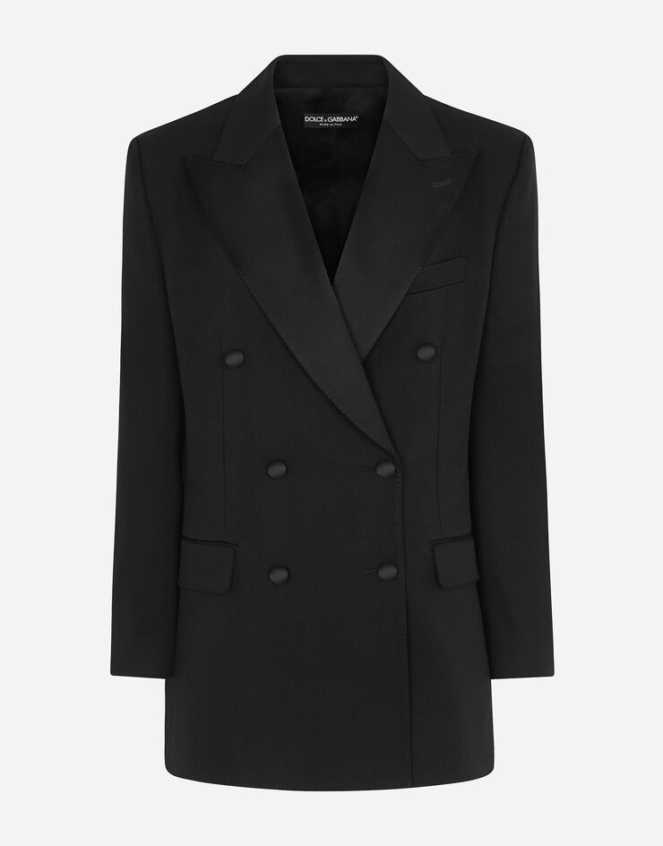 • Duchesse silk peak lapels • Long sleeves • Flap pockets • Stretch silk satin lining • Button fastenings covered in duchesse silk • The piece measures 75 cm from the rear collar seam on a size IT 40 • The model is 175 cm tall and wears a size IT 40 • Made in Italy Care And Details External composition: 51% Acetate 33% Polyamide 11% Silk 3% Polyester 2% Spandex Internal composition: 92% Silk 8% Spandex