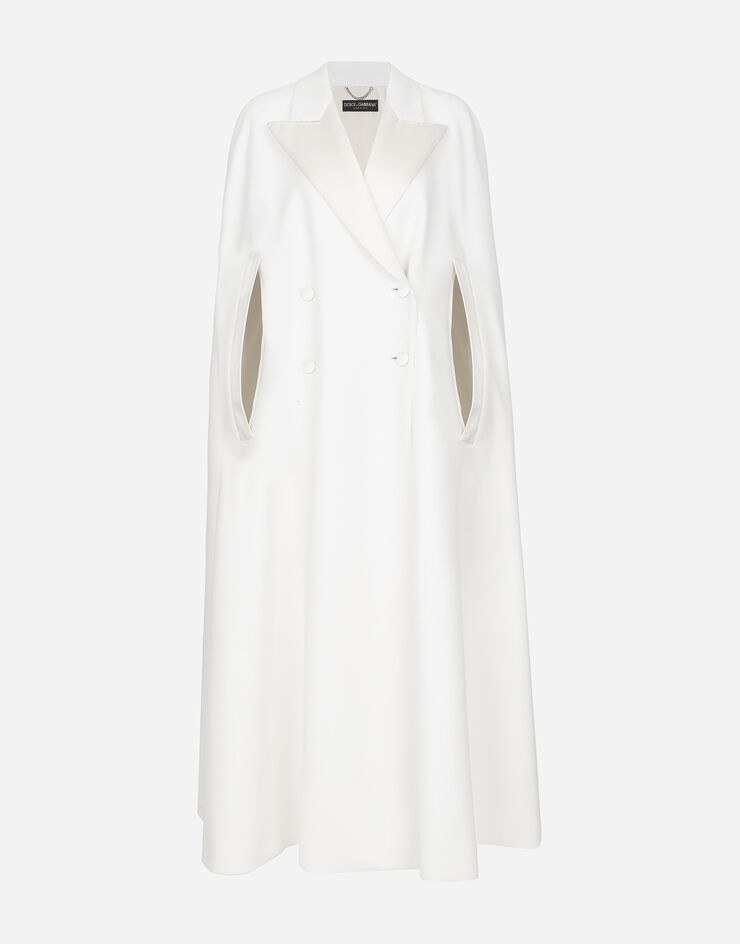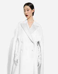 Double-breasted stretch double wool cape: • White • Duchesse peak lapels • Arm openings • Silk satin lining • Covered button fastenings on the front • The piece measures 142 cm from the center back on a size IT 40 • The model is 175 cm tall and wears a size IT 40 • Made in Italy Care And Details External composition: 47% Virgin Wool 30% Polyamide 15% Silk 5% Polyester 3% Spandex Internal composition: 100% Silk