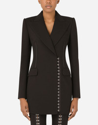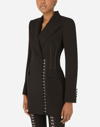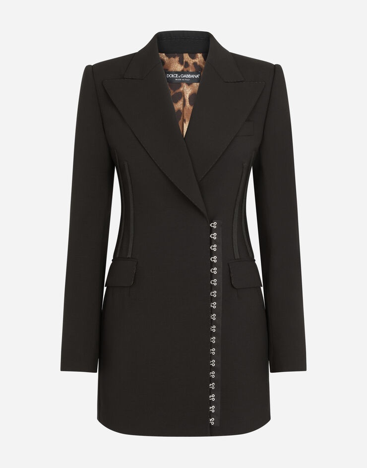 Dolce&Gabbana has created this collection by giving 90s looks a contemporary edge. This new expression of the brand’s signature aesthetic emphasizes the new cuts, volumes and details while retaining key details: femininity and sensuality. This jacket with corset-style hook-and-eye fastenings will add a touch of character to your looks: • Peak lapels • Long sleeves • Flap pockets • Leopard-print stretch satin lining • Corset-style hook-and-eye fastenings • The piece measures 80 cm - 31.5 inches from the rear collar seam on a size IT 40 • The model is 175 cm - 68.9 inches tall and wears a size IT 40 • Made in Italy Care And Details External composition: 99% Virgin Wool 1% Spandex