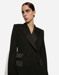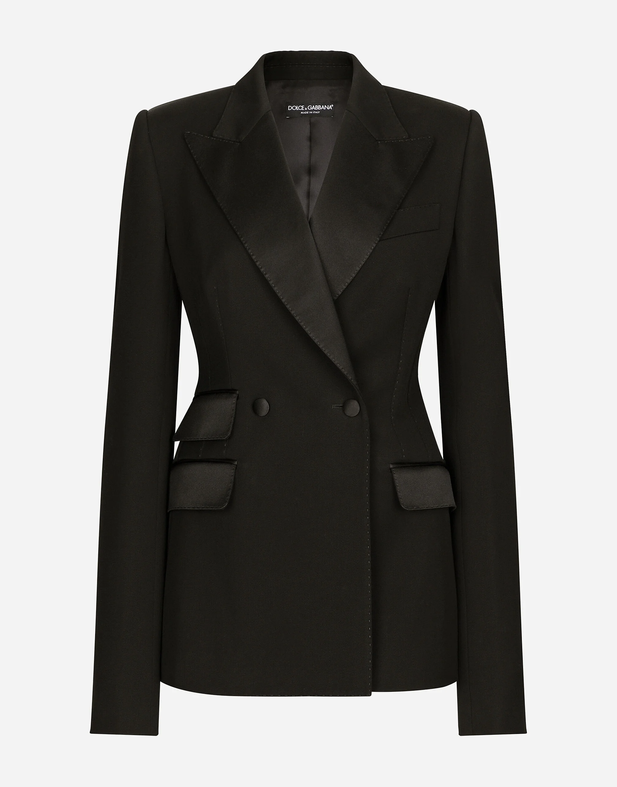 In the “WOMAN SS 24” Collection, the imagery of old Sicily interacts with the masculine, with sensual shapes, lace, nude tones and delicate overlays, to create pieces that move amid clean silhouettes, the elegance of the 1960s, the contrasts of black and white and luxurious textures. The designers are reworking their signature style and their iconic Sicilia black color to convey an aware, seductive and confident Sicilian WOMAN who is imbued with sensuality. Double-breasted woolen Turlington jacket with side vents: • Black • Duchesse peak lapels • Long sleeves • Flap pockets • Side slits • Silk satin lining • Covered button fastenings • The piece measures 70 cm from the center back on a size IT 40 • The model is 175 cm tall and wears a size IT 40 • Made in Italy External composition: 80% Virgin Wool 14% Silk 06% Polyester Internal composition: 100% Silk