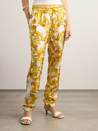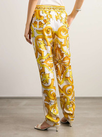 EDITORS'NOTES Few nail vibrant sun-soaked prints quite like Dolce&Gabbana - these pants are patterned with ornate swirls and florals inspired by traditional Italian Majolica pottery. They're cut from fluid silk-twill in a relaxed profile and topped with a comfortable elasticated waist. SIZE & FIT Model measurements: - Fits true to size, take your normal size - Dropped crotch, designed for a relaxed fit - Elasticated at the waist for a flexible fit - Lightweight, non-stretchy fabric - Model is 175cm/ 5'9" and is wearing an IT 40 - Bust: 78cm/ 31" - Waist: 62cm/ 24.5" - Hip: 92cm/ 36" DETAILS & CARE - Tonal-yellow, brown and white silk-twill - Pull on - 100% silk - Dry clean