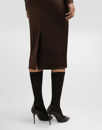 This elegant stretch satin dress is perfect for special occasions, with its fitted silhouette and refined details such as a plunging neckline and invisible zips. Stretch satin bodycon dress: • Brown • Deep beveled neckline • Long sleeves with invisible zip • Covered back zip • Slit at the bottom • Lined • Skirt length from waist 75 cm on size 40 • The model is 175 cm tall and wears size 40 IT • Made in Italy External Composition: 65% Acetate, 29% Polyamide, 6% Elastane Internal Composition: 93% Silk, 7% Elastane