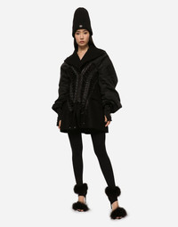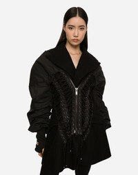 • Inner wool jacket with peak lapels • Long sleeves with fine-rib half gloves • Flap pockets • Bomber jacket with wad padding • Viscose lining • Button fastenings on the inner jacket • Zipper on the outer jacket • The piece measures 90 cm from the rear seam on a size IT 40 • The model is 175 cm tall and wears a size IT 40 • Made in Italy Care And Details External composition: 65% Modacrylic 20% Polyester 15% Viscose Internal composition: 100% Polyester