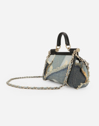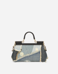 The brand icon par excellence, this Sicily bag features new details. Flaunting new proportions, it comes crafted from patchwork denim with bejeweled chain embellishment and the branded tag featuring two metal plating finishes. Medium patchwork denim Sicily handbag: • Denim • Front flap with hidden double magnetic fastening • Branded tag featuring two metal plating finishes • Top handle and detachable chain and denim strap • Detachable bejeweled chain with votive medallions • Calfskin lining and flat pocket • Item comes with a branded dust bag • Measurements: H17 x W25 x D9 cm • Made in Italy External composition: 75% Cotton 25% Calfskin Internal composition: 100% Calfskin