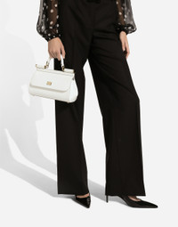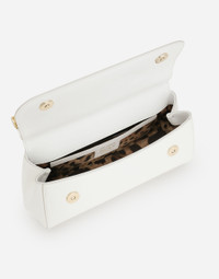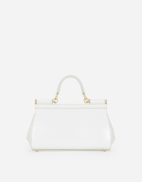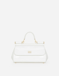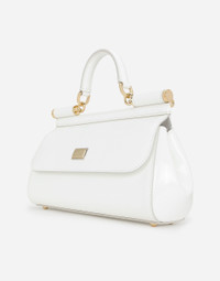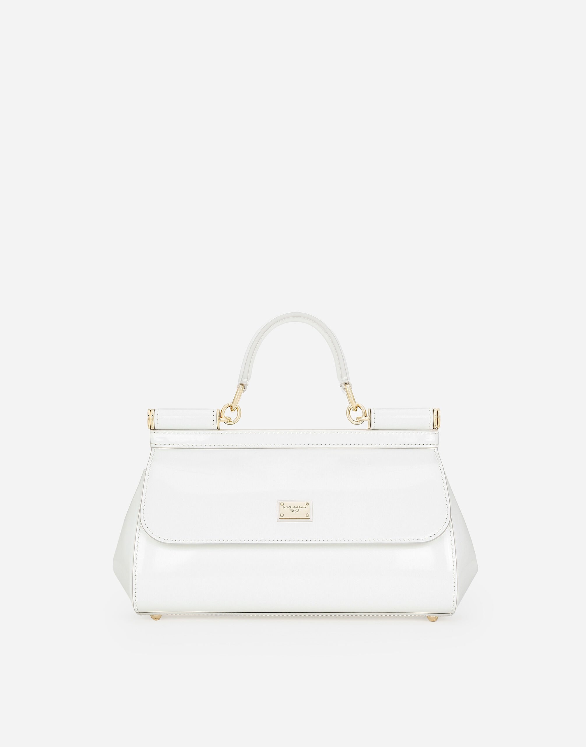 A brand icon, this practical and compact Sicily bag is perfect for carrying your essentials with you. Made from polished calfskin, it is embellished by the branded tag featuring two metal plating finishes. Elongated Sicily handbag in polished calfskin: • White • Front flap with hidden double magnetic fastening • Branded tag featuring two metal plated finishes • Top handle and adjustable, detachable strap in polished calfskin • Fabric lining and flat pocket • Item comes with a branded dust bag • Measurements: H17 x W25 x D9 cm • Made in Italy External composition: 100% Calfskin Internal composition: 88% Cotton 12% Calfskin