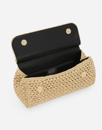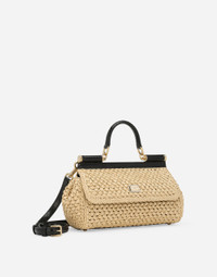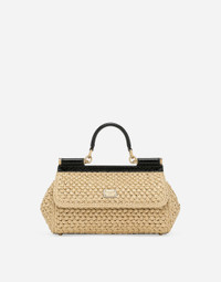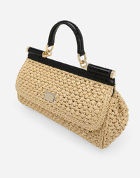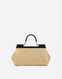 A brand icon, this practical and compact Sicily bag is perfect for carrying your essentials with you. Coming in crochet raffia, it features an adjustable, detachable crossbody strap in python skin and is embellished with the branded tag featuring two metal plating finishes. Elongated raffia crochet Sicily handbag: • Beige • Front flap with hidden double magnetic fastening • Branded tag featuring two metal plated finishes • Top handle and adjustable, detachable strap in python skin • Fabric lining and flat pocket • Metal feet studs on the base • Item comes with a branded dust bag • Measurements: H17 x W25 x D9 cm • Made in Italy External composition: 70% Viscose 30% Python Molurus Internal composition: 80% Calfskin 15% Cotton 5% Acrylic