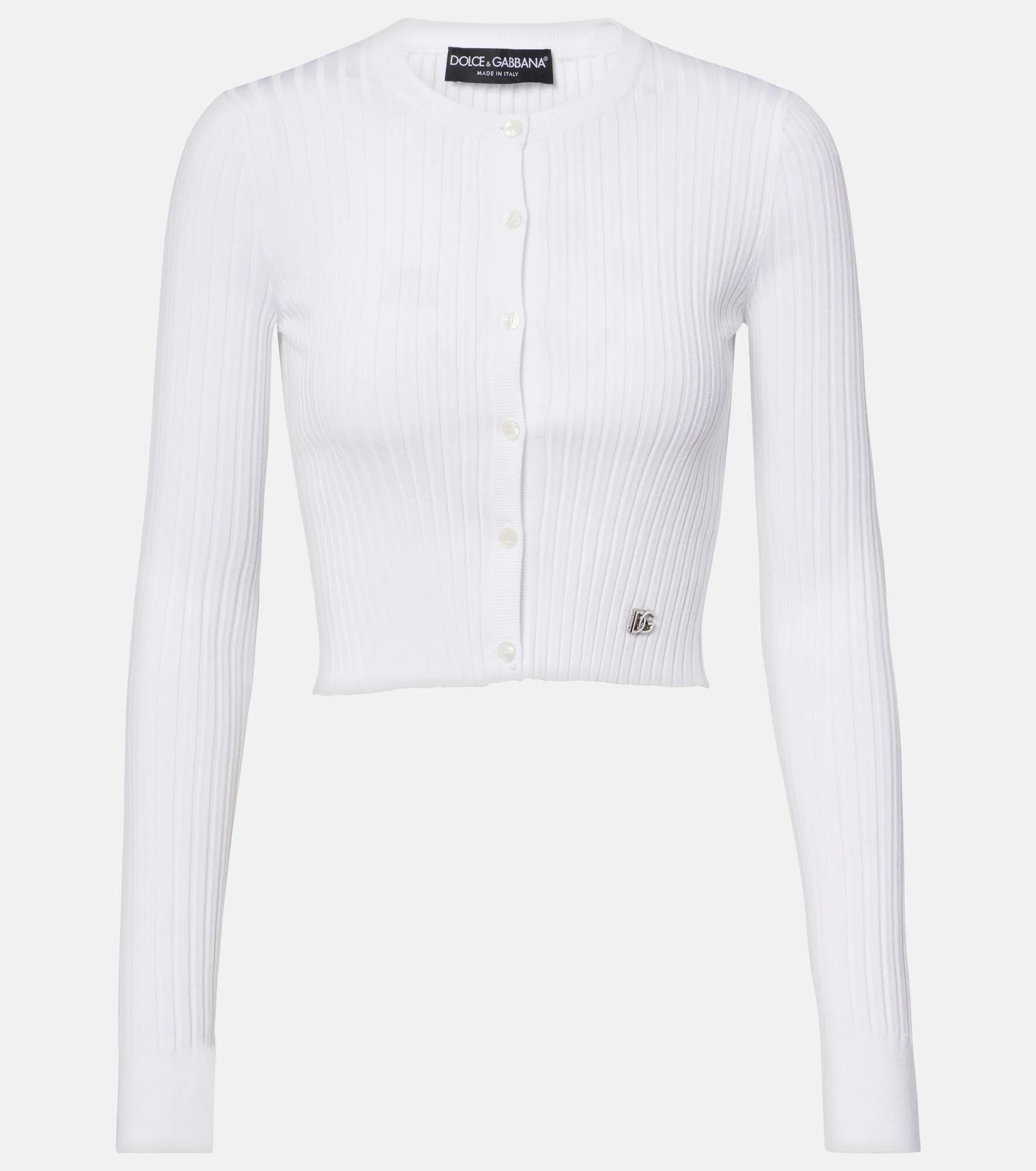 Sicilian culture is on display in Dolce&Gabbana's aesthetic, with bold styles inspired by the brand's Italian heritage. This cardigan is made in Italy in a crewneck silhouette with hardware trims. Product Details - Material: 47% polyamide, 41% viscose, 9% polyester, 3% polyurethane - Care instructions: dry clean - Made in Italy - Designer color name: BIanco Ottico - Item color: white - Material II: 100% zamak - Collar: crewneck - Closure: buttoned placket - Item number: P01041111 Size & Fit - True to size - Fitted - Stretchy fabric - Cropped - The model seen in the picture is 178cm-5'10", cup size %cupsize%, and wearing a size IT 40