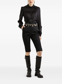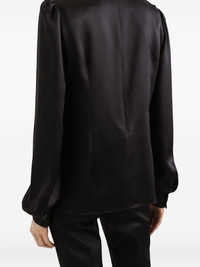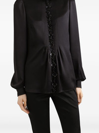 silk satin blouse Highlights - Black - Concealed rear zip fastening - High neck - Ruffled collar - Long sleeves - Floral embellishments Made in Italy Composition Silk 100% Washing instructions Read Manufacturer Guidelines