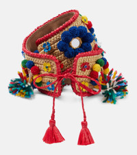 This embellished raffia belt by Dolce&Gabbana is designed for fashion's segment makers. Featuring everything from mini mirrors, to pom poms and metal flowers, this leather lined belt will never cease to surprise. Product Details - Material: 70% rayon, 20% raffia, 7% wool, 3% acrylic - Care instructions: do not wash - Made in Italy - Designer color name: Natural/ Multicolor - Item color: multicolor - Comes with dust bag - Contains non-textile parts of animal origin - Closure: self-ties - Lining: 100% calf leather - Item number: P01057187 Size & Fit - Width 7cm-3"