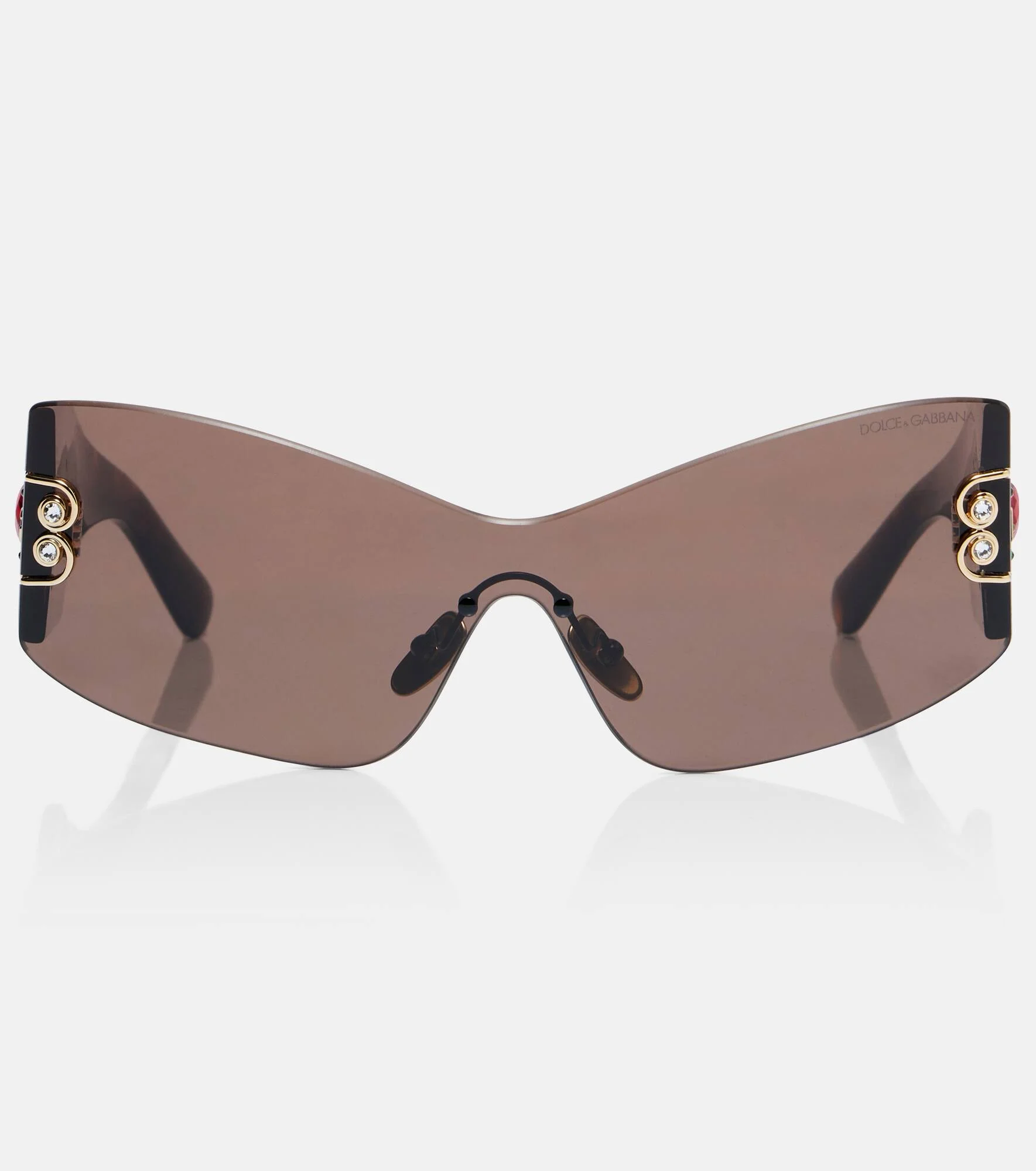 Embrace bold glamour with these sunglasses from Dolce&Gabbana. The pair boasts sculpted, rectangular frames with intricate gold-toned hardware and vibrant crystal embellishments at the temples. Product Details - Frame material: acetate - Frame color: brown - Lens filter category 3, 100% UV protection - Color: brown - Lens color: brown - Made in Italy - Includes: case, cleaning cloth - The color of the case may vary - Designer color name: Havana - Item number: P01121365 Size & Fit - Lens width: 145mm-5.7" - Earpiece length: 150mm-5.9"