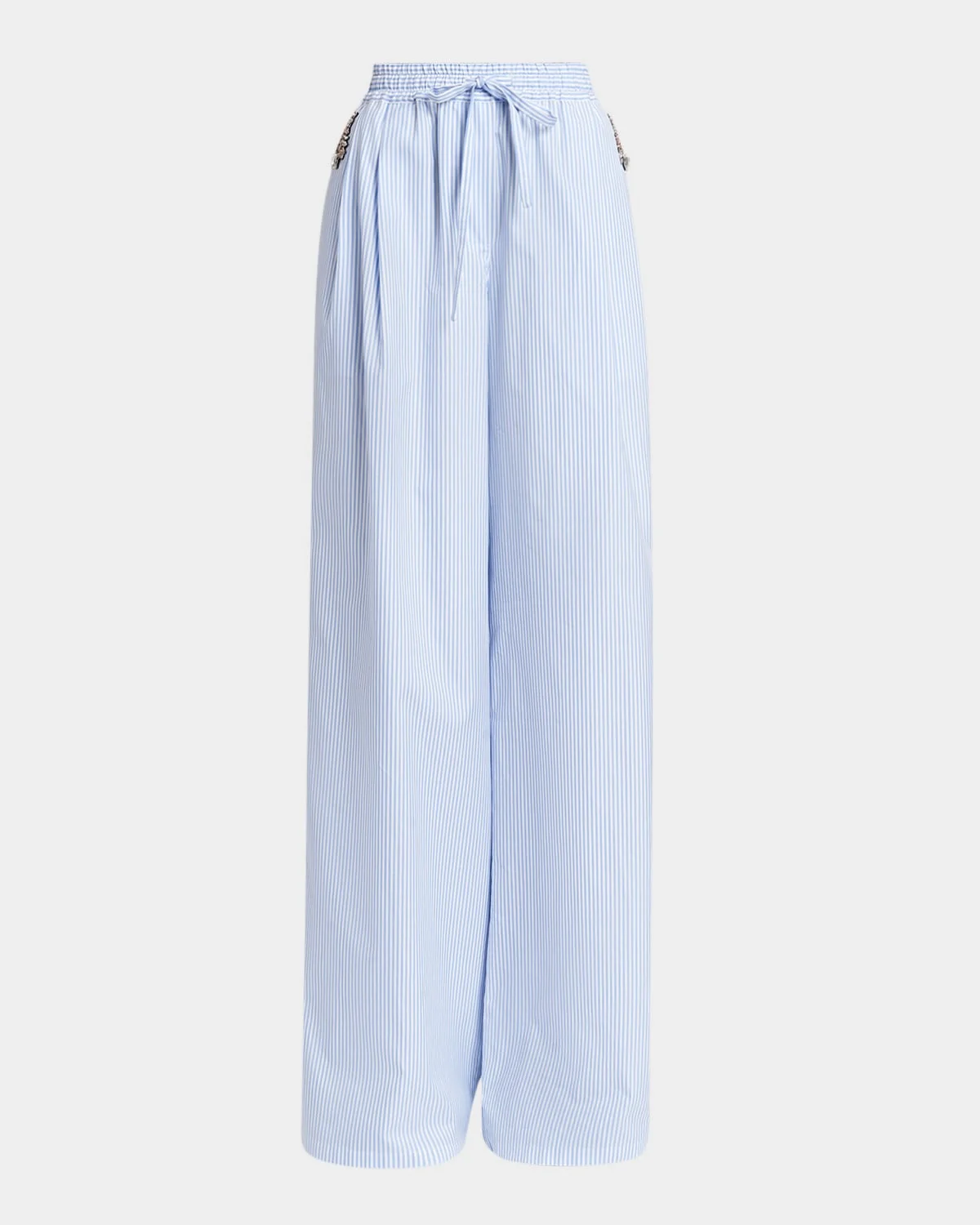 Embellished Striped Wide-Leg Pull-On Pants