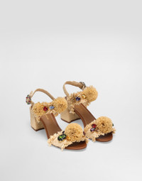 This sandal embodies elegance and craftsmanship, combining interweaving of fine materials with hand-embroidered details, for a sophisticated and contemporary look. Embroidered sandal with fringes: • Multi-coloured • Shape Keira, Evie heel • Heel height 60 mm • Leather sole with DG fire logo • Open toe insole in printed leather with logo • Embroidery with stones and jewel buckle • DG gold electroplating • Item equipped with black cotton bag and black embossed box • Made in Italy External Composition: 86% Viscose, 14% Cotton Internal Composition: 60% Goat leather, 40% Calfskin