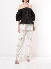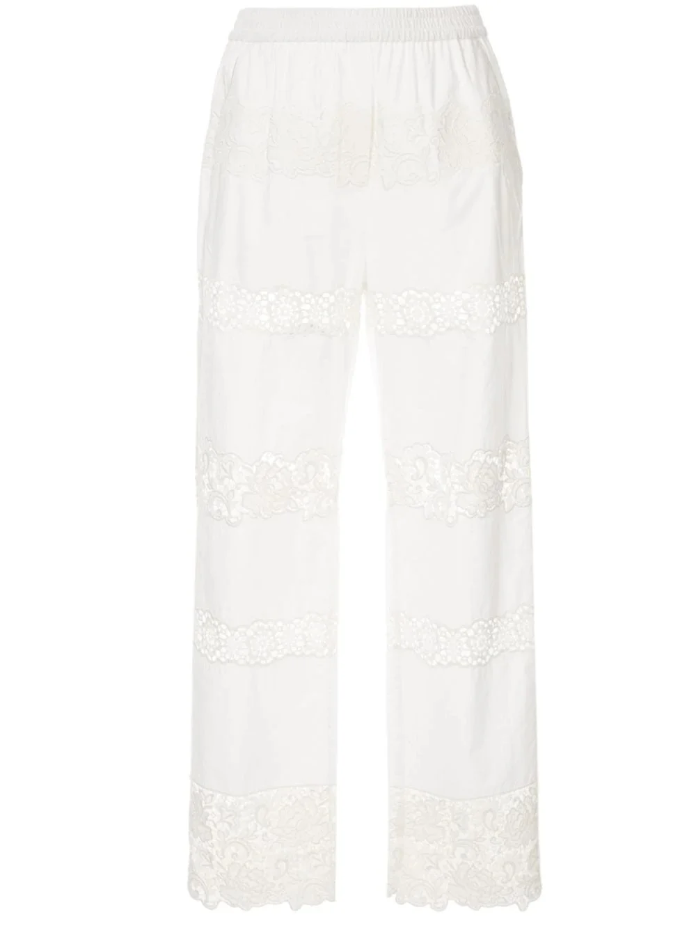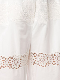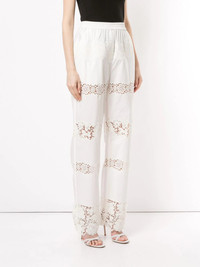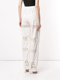 embroidered trousers Dolce & Gabbana are the height of romanticism, femininity and Italian luxury. Along with bright colours and signature floral blooms, the designers behind the iconic brand are expert in fashioning timeless essentials for the woman of any age. Introduce an air of sophisticated luxury to your SS19 looks with these white cotton and silk blend embroidered trousers from Dolce & Gabbana. Featuring a high rise, a pull-on style, an elasticated waistband, side pockets, embroidered details and a straight leg.White cotton and silk blend embroidered trousers from Dolce & Gabbana featuring a high rise, a pull-on style, an elasticated waistband, embroidered details and a straight hem. Made in Italy Composition Cotton 88%, Polyester 9%, Silk 5% SIZE & FIT Model measurements Height 5 ft 9 in(1.75 m) Bust/Chest 33.07 in(84 cm) Hips 35.03 in(89 cm) Waist 24.01 in(61 cm) Washing instructions Dry Clean Only