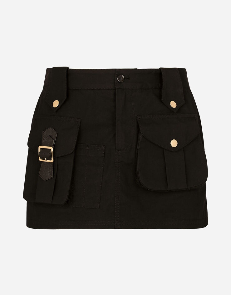 Cotton faille miniskirt with large pockets: • Black • Regular rise • Unlined • Front zipper and button fastening • The piece measures 45 cm on a size IT 40 • The model is 175 cm tall and wears a size IT 40 • Made in Italy Care And Details External composition: 100% Cotton