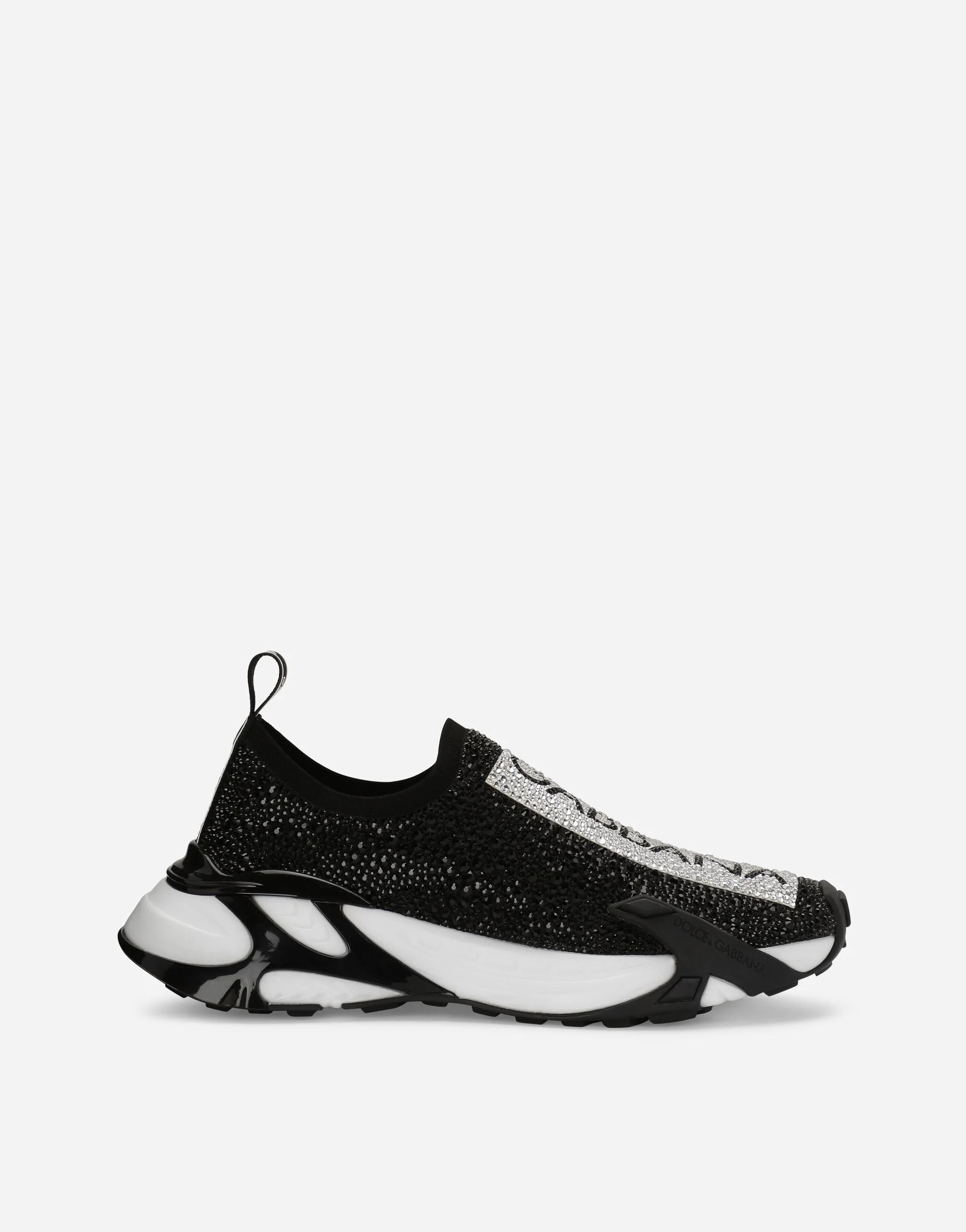 Fast sneakers with fusible crystals: • Multi-colored • Stretch mesh upper with a sock shape and fusible crystal embellishment • Branded, stretch tape on the back • Leather footbed with branded label • Two-tone rubber sole • Extra-light rubber bottom assembly • Item comes with themed packaging • Made in Italy Care And Details External composition: 80% Polyester 20% Viscose