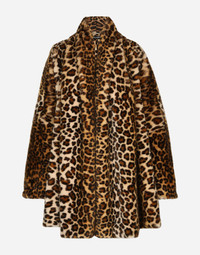Faux fur cape with a leopard print and the Re-Edition label: • Shawl lapels • Long sleeves • Light insulated padding • Left inner pocket on front • Leopard-print stretch sateen lining • “Kim Dolce&Gabbana” inner label • The piece measures 80 cm from the center back on a size IT 40 • The model is 175 cm tall and wears a size IT 40 • Made in Italy Care And Details External composition: 83% Modacrylic 17% Polyester Internal composition: 97% Polyester 3% Spandex
