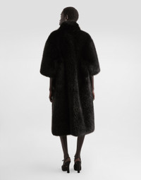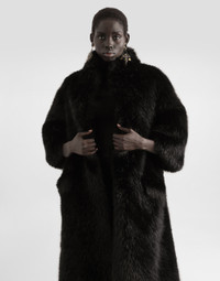 The Spring/Summer 2025 Women’s Collection is celebrating Italian beauty through bold and charismatic femininity. The 50s-inspired lingerie is the star, intermingling with fitted dresses, corsets and oversize trench coats. The iconic jackets have been updated with cropped cuts and modern inserts, while the floral prints add a romantic edge. The eveningwear shines with light fabrics and crystals, accompanied by look-defining accessories, from iconic bags to the cross earrings. Faux fur coat: • Black • 3/4 sleeves • Flap pockets • Silk satin lining • Covered hook-and-eye fastenings • The piece measures 113 cm from the center back on a size IT 40 • The model is 175 cm tall and wears a size IT 40 • Made in Italy External composition: 91% Modacrylic 9% Polyester Internal composition: 98% Silk 2% Polyester