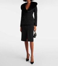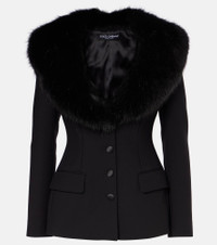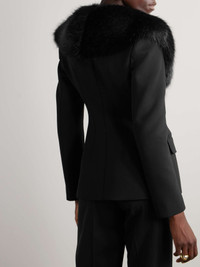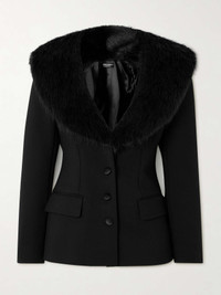 Faux fur-trimmed grain de poudre wool-blend blazer