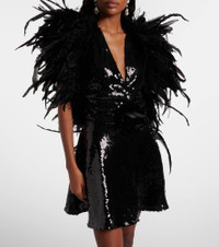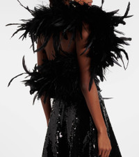 In true Dolce&Gabbana fashion, this scarf is crafted from a tactile combination of feathers on one side and cotton on the other. The flamboyant piece is rendered in black and is sure to add a bold touch to your look. Product Details - Material: 100% feathers - Care instructions: dry clean - Made in Italy - Designer color name: Nero - Item color: black - Material II: 92% cotton, 8% elastane - Closure: VELCRO® fastening - Contains non-textile parts of animal origin - Item number: P01107003 Size & Fit - Adjustable size - Length 157cm-62" - Max. width 4.5cm-2" - Length of fringe 10/32cm-4/12.5"