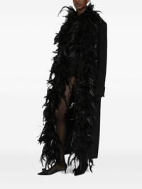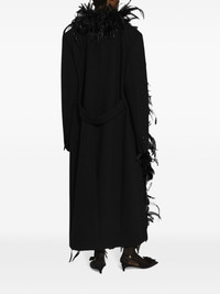 feather-trim coat Highlights - Black - Virgin wool blend - Feather-trim detailing - Double-breasted button fastening - Belted waist - Long sleeves - Long length - Central rear vent Made in Italy Composition Rooster Feathers 100%, Virgin Wool 97%, Polyamide 2%, Spandex/Elastane 1%