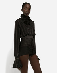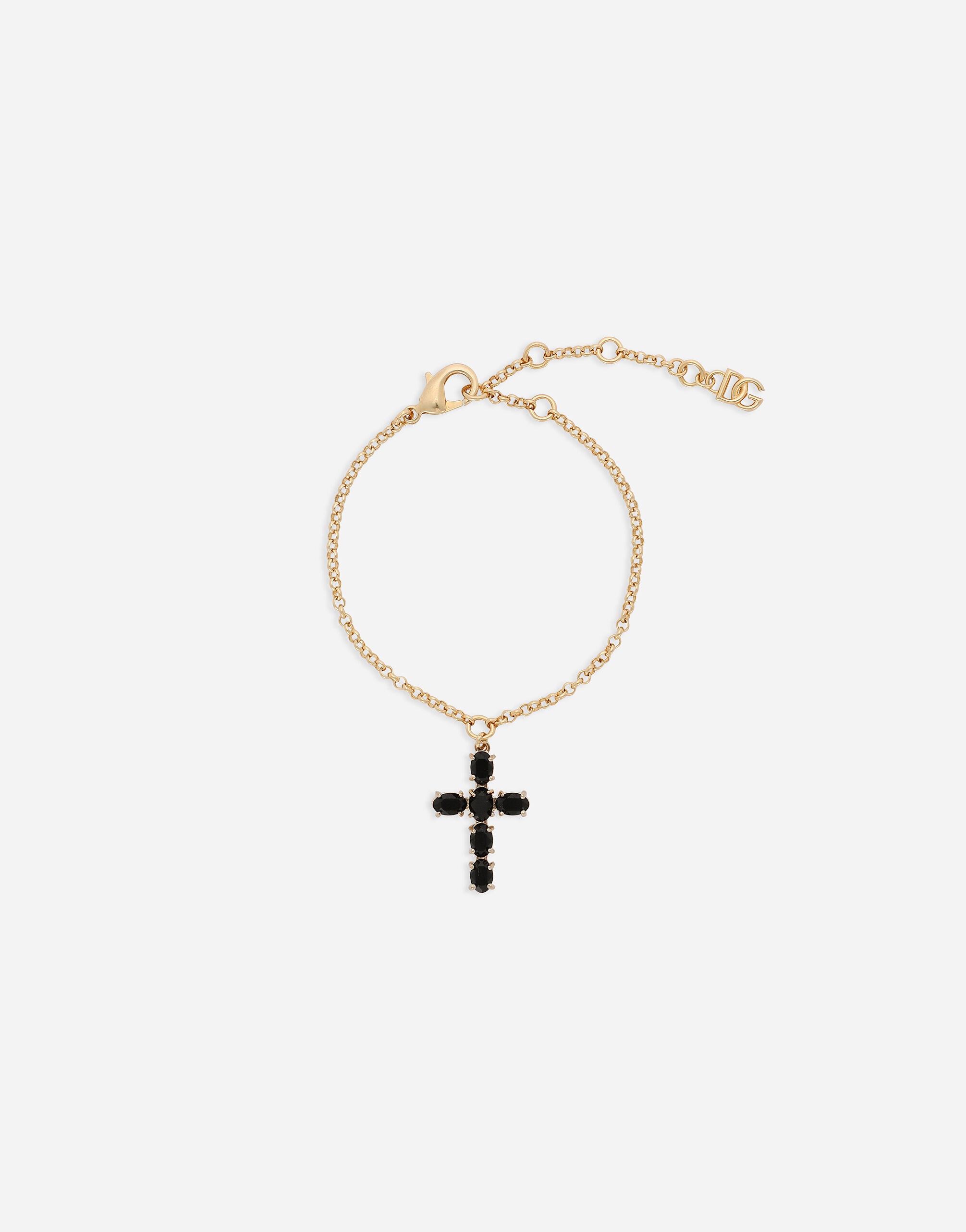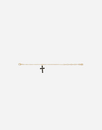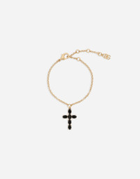 In the “WOMAN SS 24” Collection, the imagery of old Sicily interacts with the masculine, with sensual shapes, lace, nude tones and delicate overlays, to create pieces that move amid clean silhouettes, the elegance of the 1960s, the contrasts of black and white and luxurious textures. The designers are reworking their signature style and their iconic Sicilia black color to convey an aware, seductive and confident Sicilian WOMAN who is imbued with sensuality. Fine link necklace with rhinestone-detailed cross and DG logo: • Gold • Length: 60 cm • Clasp fastening • Nickel-free and hypoallergenic materials • Engraved logo • Made in Italy External composition: 80% Brass 20% Glass