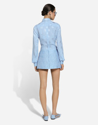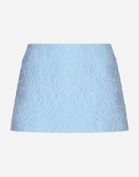 In the FW 24/25 DNA Collection, the rules of classic tailoring have been reworked with an innovative feel. New raschel weave techniques feature on micro-jackets and coats, and original textures are woven on trench coats, skirts, jacquard suits and shirts. The color palette made up of Nero Sicilia black, Milky White and Ocean Blue is also original. The iconic bags in fine nappa leather and “Pyton FC Machine” finish off the looks, as well as the Muns shoes inspired by the Global Ambassador, Mun KaYoung. Floral quilted jacquard miniskirt: • Light blue • Low rise • A-line • Tonal stretch silk satin lining • Rear zipper and hook-and-eye fastening • The piece measures 40 cm from the waist down on a size IT 40 • The model is 175 cm tall and wears a size IT 40 • Made in Italy External composition: 64% Cotton 23% Polyester 13% Silk Internal composition: 92% Silk 08% Spandex