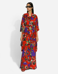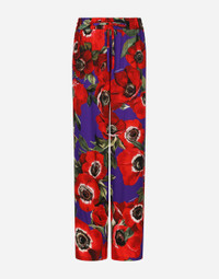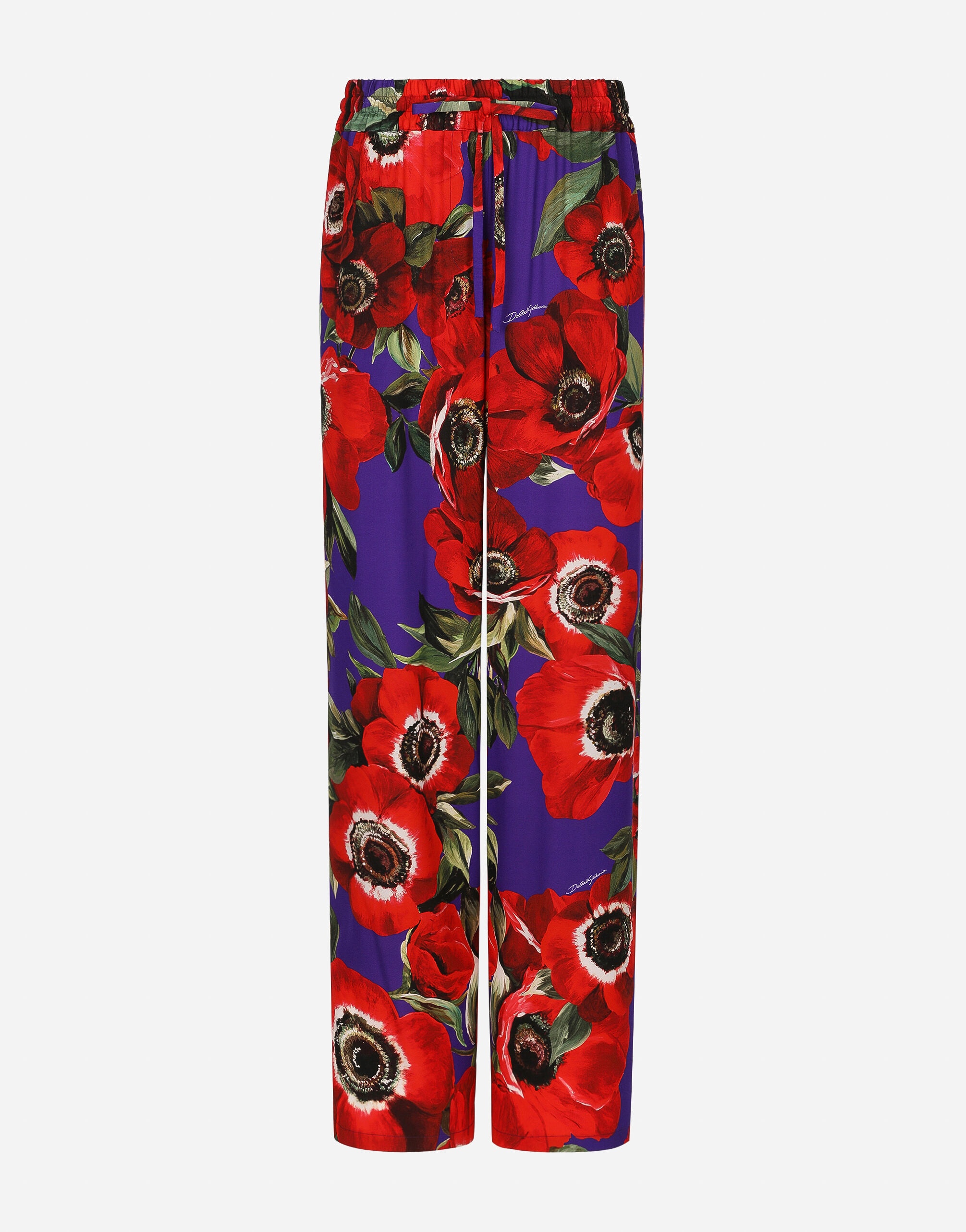 The spirit of the 1960s is taking over the new Flower Power collection. The focus is a head-to-toe floral look built around pairing and layering rose, anemone and floral bouquet maxi-prints. A cosmopolite poised between playful and sexy, this women interprets the austerity and elegance of the 1960s, harking back to boldly opulent imagery that here at Dolce&Gabbana is condensed and reinterpreted through silhouettes, ample proportions and airy shapes, bringing femininity and sensuality to the forefront. Flared silk charmeuse pants with anemone print: • Multi-colored • High stretch waist with drawstring • Slant pockets • Inner leg: 85 cm • Hem: 27.5 cm • The model is 175 cm tall and wears a size IT 40 • Made in Italy The difference in the print placement that you may find on this product is a feature of Dolce&Gabbana’s “Handmade” pieces. A detail that makes every garment or accessory unique and exclusive. External composition: 94% Silk 6% Spandex