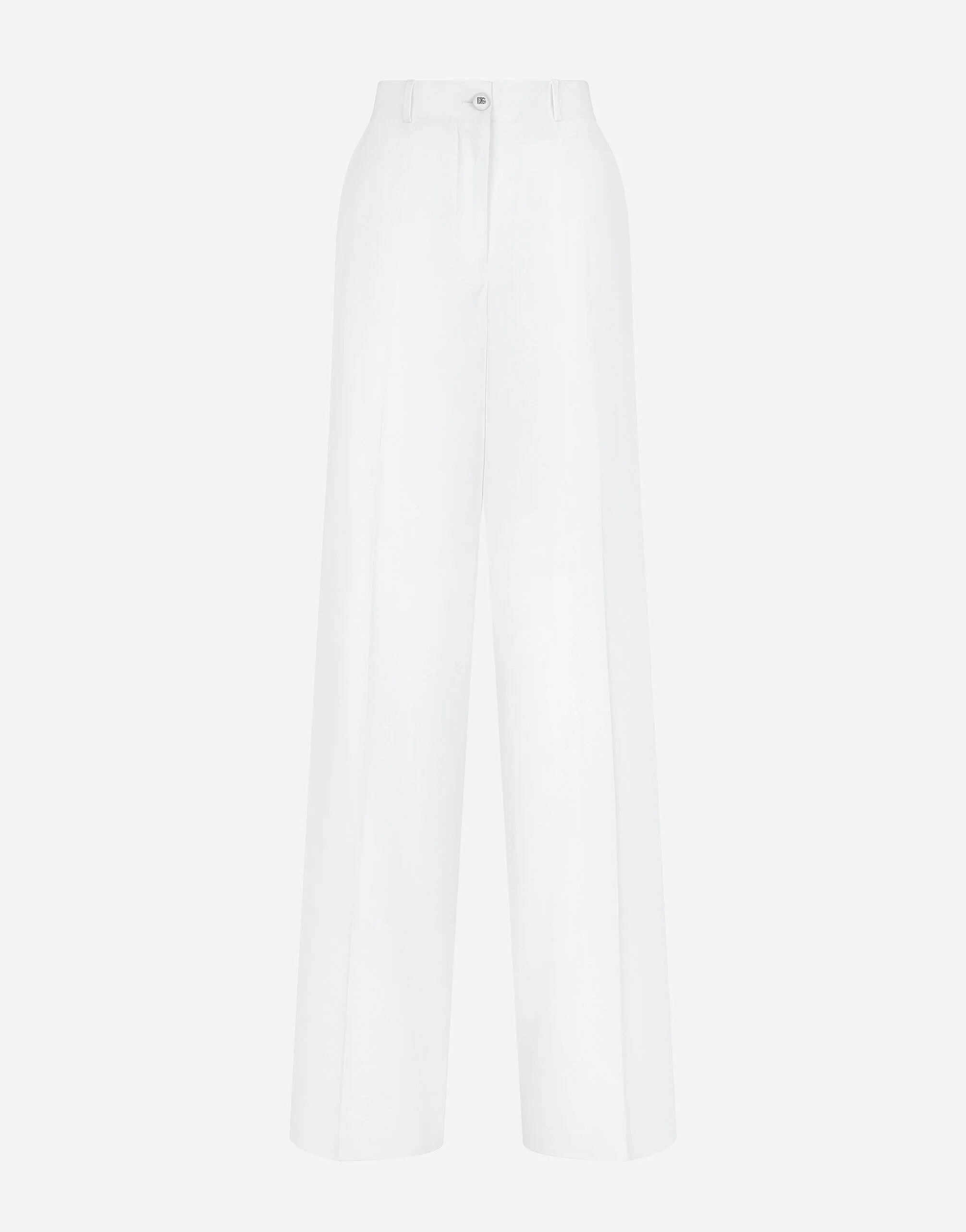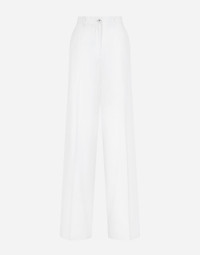The DNA collection is distinguished by timeless shapes, bringing together three concepts: Sicilian flair, tailoring and sensuality. Nero Sicilia black and optical white predominate and pair with colors that catapult us onto the island of Sicily and make us dream. The designers channel the timeless wardrobe made up of creations that are instantly unmistakable in their simplicity, presenting us with sophisticated beauty loaded with meaning and symbolism that transcends fashion. Flared stretch cotton gabardine pants: • White • Regular rise • Front slant pockets • Welt back pockets with buttons • Belt loops • Inner leg: 90 cm • Hem: 31 cm • Concealed front zipper and covered button fastening with logo • The model is 175 cm tall and wears a size IT 40 • Made in Italy External composition: 97% Cotton 3% Spandex