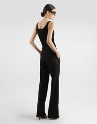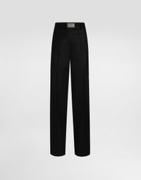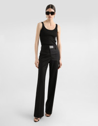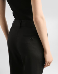 Flared flannel pants with logo tag: • Black • Regular rise • Belt with logo tag • Slant front pockets • Welt back pockets with button • Inner leg: 89 cm • Hem: 26 cm • Front zipper and hook-and-eye fastening • The model is 175 cm tall and wears a size IT 40 • Made in Italy Care And Details External composition: 100% Virgin Wool