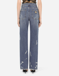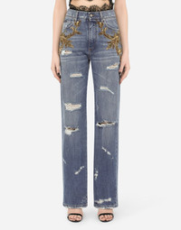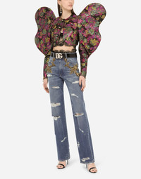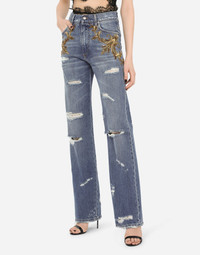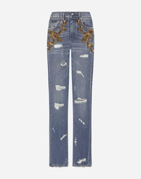 In this collection Dolce&Gabbana is rewriting the rules of fashion, women and modernity and infusing it with joy and optimism, creatively merging textures, colors and styles in a modern way and drawing inspiration from the 2000s. The result is a journey back to the roots of the brand’s signature aesthetic, creating unique and fine garments with a modern feel, such as these denim jeans featuring floral embellishment with sequins, beads and French wire detailing: • High-waisted • 5 pockets • Branded label on the coin pocket • Branded metal and leather plate • Inner leg: 89 cm • Hem: 26 cm • Metal button with logo and zipper • The model is 175 cm tall and wears a size IT 40 • Made in Italy Care And Details External composition: 100% Cotton
