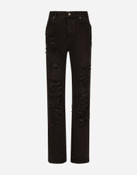 Flared jeans with ripped details: • High-waisted • 5 pockets • Branded label on the coin pocket • Branded metal and leather tag • Inner leg: 87.7 cm • Hem: 23.5 cm • Metal button with logo and zipper • The model is 175 cm tall and wears a size IT 40 • Made in Italy Care And Details External composition: 100% Cotton