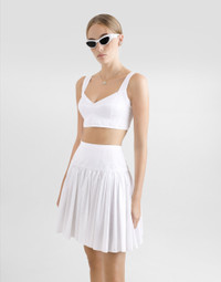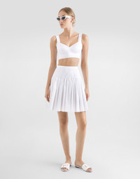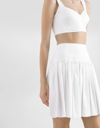 The Spring/Summer 2025 Warm Weather Collection is a vibrant ode to the beauty of the floral world, celebrating the elegance and vitality that lie at the heart of the brand’s DNA. Delicate, colorful bouquets dance across light dresses, skirts, trousers, and beachwear, infusing each piece with a sense of romance and freshness. Coordinated accessories, from scarves to headbands, add charm. An explosion of color and blooms, this collection captures the brand’s unmistakable spirit. Short cotton poplin circle skirt: • White • High-waisted • Lined • Rear zipper and hook-and-bar fastening • The piece measures 46 cm from the waist down on a size IT 40 • The model is 175 cm tall and wears a size IT 40 • Made in Italy External composition: 100% Cotton Internal composition: 100% Cotton