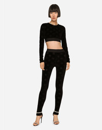 Flocked jersey leggings with all-over DG logo: • Branded tonal stretch Dolce high waist • Inner leg: 79 cm • Hem: 11.5 cm • Invisible zipper and hook-and-eye fastening • The model is 175 cm tall and wears a size IT 40 • Made in Italy Care And Details External composition: 100% Cotton