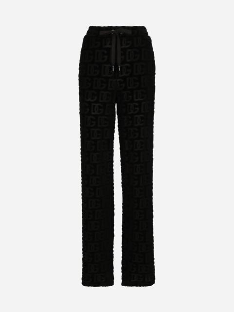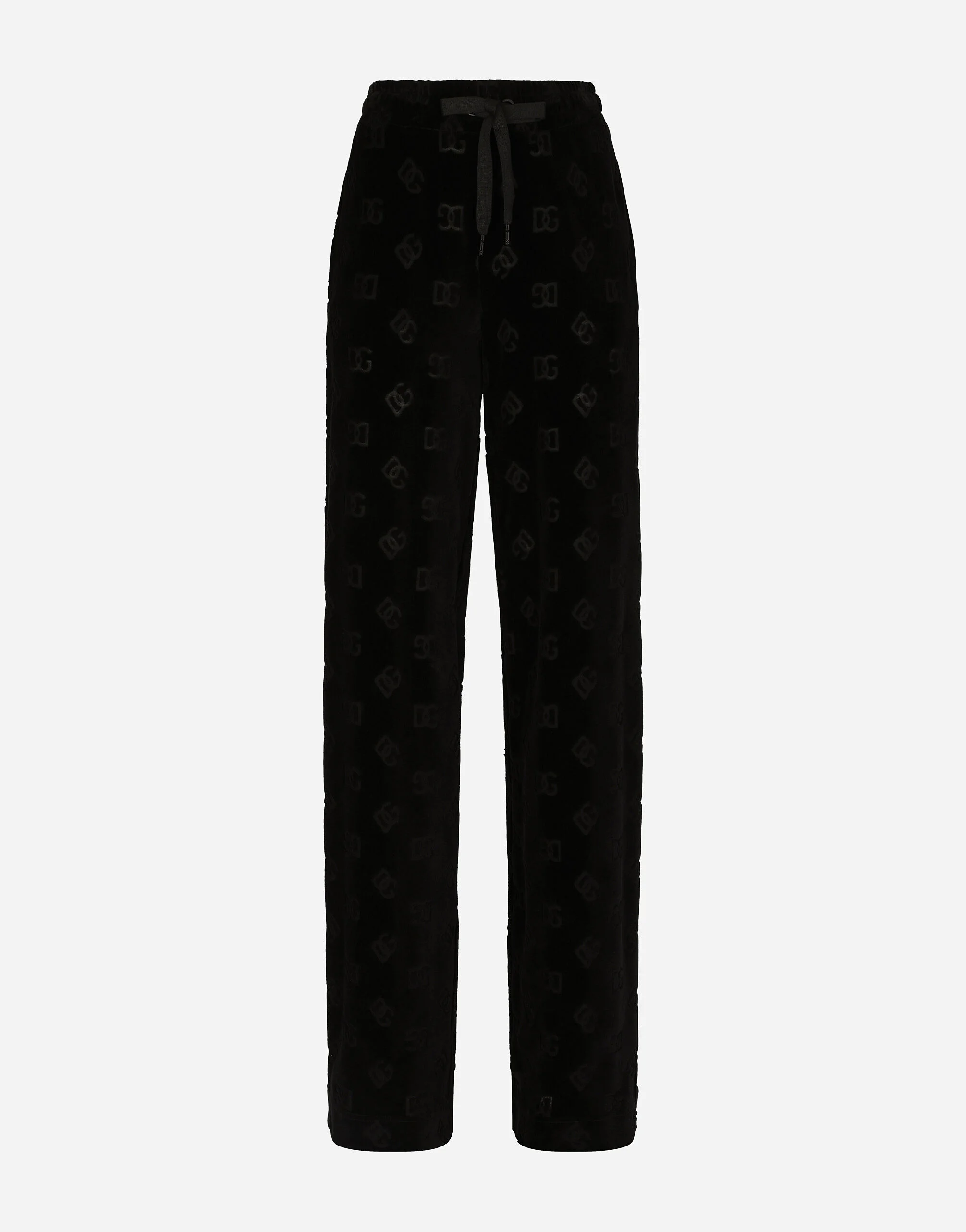 Flocked jersey pants with all-over DG logo: • Dolce high waist • Front seam pockets • Inner leg: 84 cm • Hem: 26.3 cm • The model is 175 cm tall and wears a size IT 40 • Made in Italy Care And Details External composition: 100% Cotton