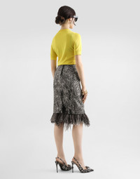 The Spring/Summer 2025 Warm Weather Collection is a vibrant ode to the beauty of the floral world, celebrating the elegance and vitality that lie at the heart of the brand’s DNA. Delicate, colorful bouquets dance across light dresses, skirts, trousers, and beachwear, infusing each piece with a sense of romance and freshness. Coordinated accessories, from scarves to headbands, add charm. An explosion of color and blooms, this collection captures the brand’s unmistakable spirit. Silk knit sweater with flower embellishment: • Yellow • 18-gauge knit • Round neck • Short sleeves • Dense hand • French seam armholes • Regular fit • The piece measures 54 cm from the shoulder seam on a size IT 40 • The model is 175 cm tall and wears a size IT 40 • Made in Italy External composition: 100% Silk
