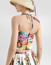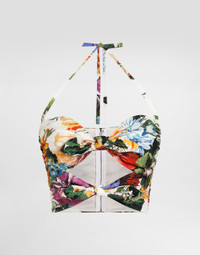 This printed poplin top is the epitome of modern elegance, featuring draped details and an eye-catching silhouette, perfect for those looking for a distinctive and fashionable look. Poplin top with flower bouquet print: • Multi-coloured • Halter lacing • Bows on the front • Knotted straps at the back • Zip at the back • The model is 175 cm tall and wears size 40 IT • Made in Italy The difference in the print placement that you may find on this product is a feature of Dolce&Gabbana’s “Handmade” pieces. A detail that makes every garment or accessory unique and exclusive. External Composition: 100% Cotton Internal Composition: 97% Cotton, 3% Elastane
