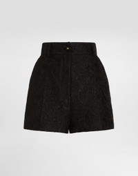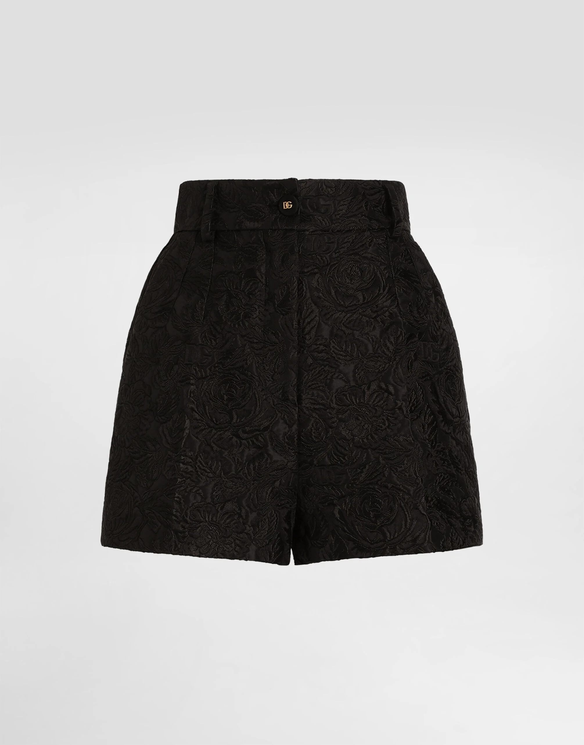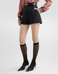 The Women’s DNA Collection is introducing a new side to femininity, which comes in shades of rose quartz, poised between sheerness and opacity, lightness and structure, formality and sensuality. Geometric Dolce Jackets, jacquard pajamas and floral brocade dresses intertwine with ultra-romantic designs. The DG print becomes an iconic statement, while Cordonetto lace and hints of Sicily Black embody the essence of a determined yet romantic femininity. Quilted floral jacquard shorts with DG logo: • Black • Regular rise • Slant pockets • Belt loops • Inner leg: 4.7 cm • Hem: 33 cm • Zipper and cannete-covered button with DG logo • The model is 175 cm tall and wears a size IT 40 • Made in Italy External composition: 49% Cotton 32% Polyester 19% Silk