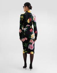 The Women's Black Sicily Collection reinforces Dolce&Gabbana's iconic fabrics and codes rooted in Italian heritage. Sensual silhouettes, highlighted by floral prints and refined corsetry, evoke an intriguing elegance, while the iconic black lace, satin, and velvet dominate the collection. Denim in various shades of blue introduces a contemporary twist, balancing the classic and modern. Embroidered crosses, medals, and jewelry add a sophisticated touch. Stretch silk charmeuse calf-length skirt with peony and rose print: • Multi-colored • High-waisted • Stretch silk crepe de chine lining • Rear zipper and hook-and-bar fastening • The piece measures 75 cm from the waist down on a size IT 40 • The model is 175 cm tall and wears a size IT 40 • Made in Italy The difference in the print placement that you may find on this product is a feature of Dolce&Gabbana’s “Handmade” pieces. A detail that makes every garment or accessory unique and exclusive. External composition: 94% Silk 06% Spandex Internal composition: 91% Silk 09% Spandex