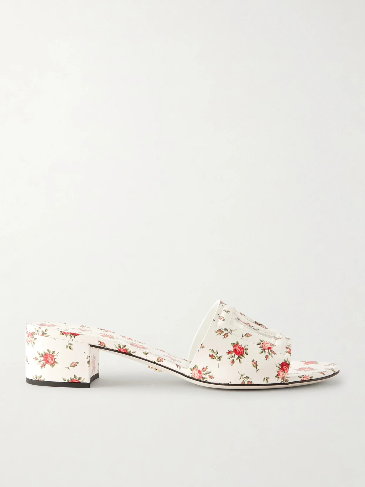 Flowers are a recurring theme in Dolce & Gabbana's collections. Part of the label's 'Re-Edition' line, these leather mules originally appeared on the fashion scene in 2000. The strap features a cutout 'DG' logo.
