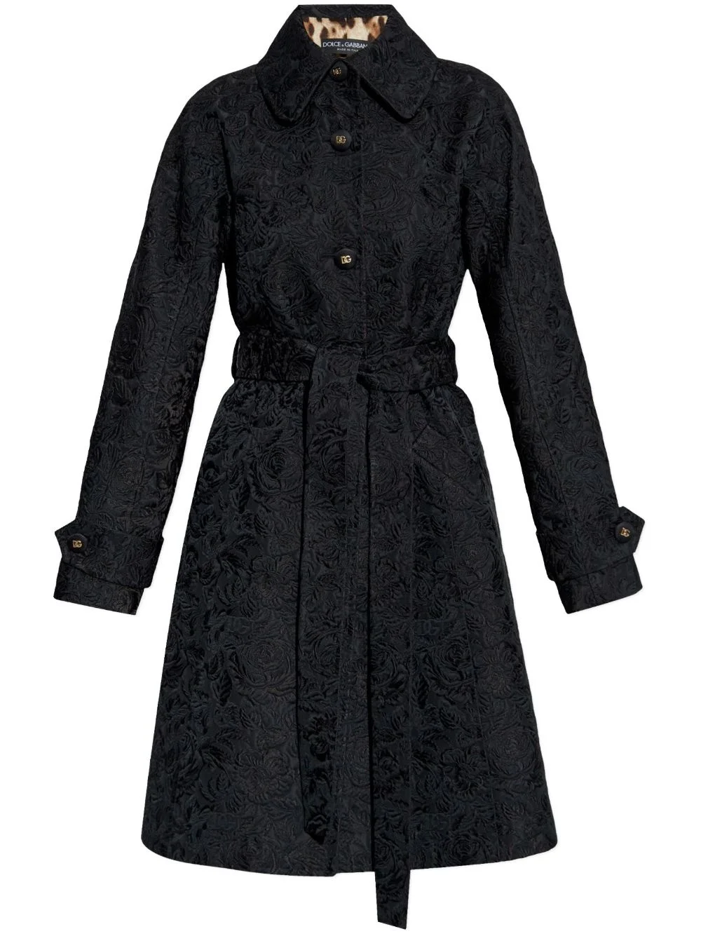 floral-jacquard coat Highlights - Black - Front button fastening - Belted waist - Two side welt pockets - Buttoned cuffs Made in Italy Composition Outer: Cotton 49%, Polyester 32%, Silk 19% Lining: Polyester 100%