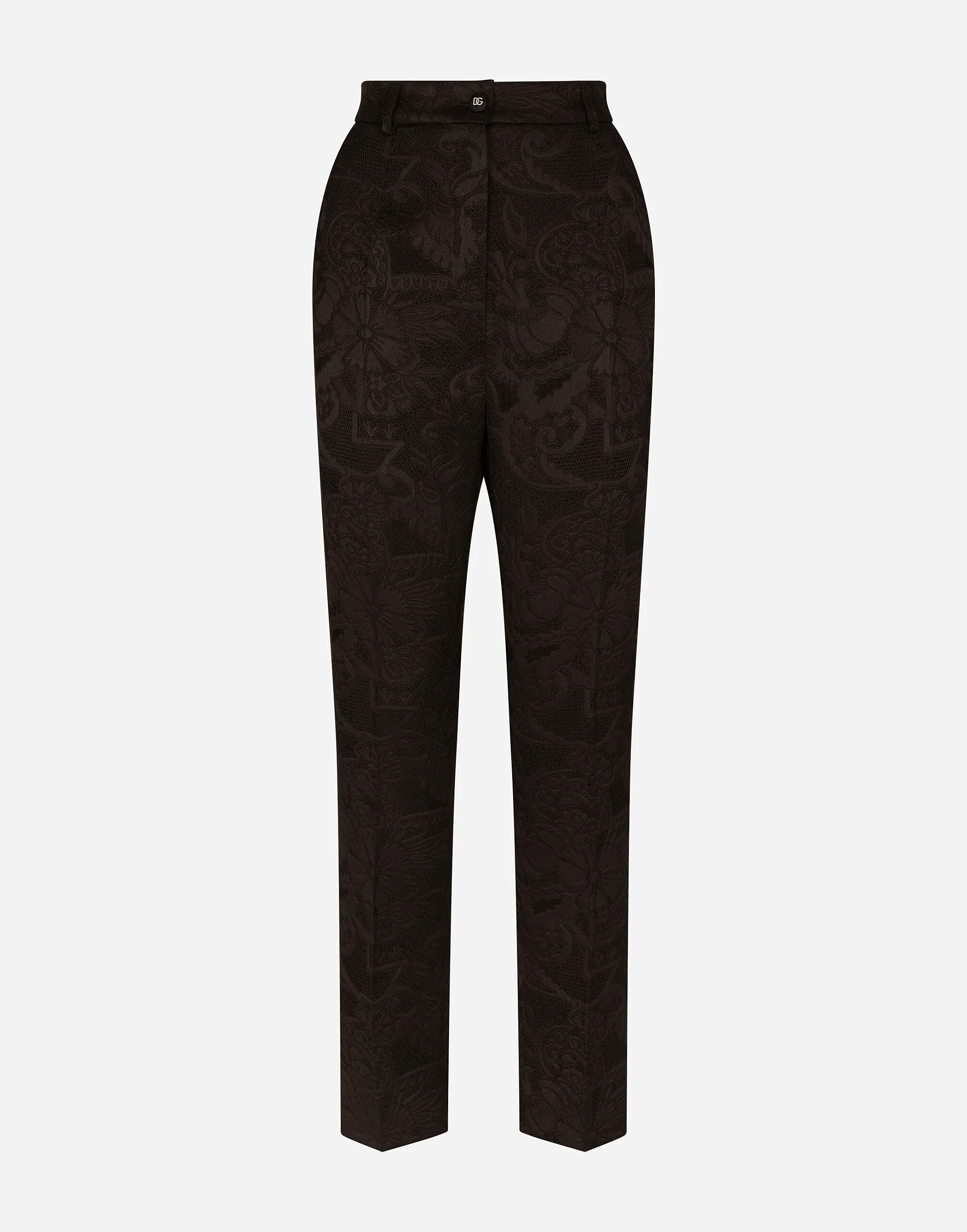 Floral jacquard pants: • Dolce high waist • Front slant pockets • Welt back pockets • Belt loops • Inner leg: 74 cm • Hem: 17 cm • Zipper and canneté-covered button with DG logo • The model is 175 cm tall and wears a size IT 40 • Made in Italy Care And Details External composition: 57% Polyester 24% Acetate 17% Viscose 2% Spandex