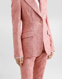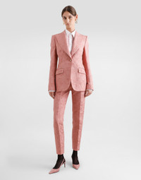 The Women’s DNA Collection is introducing a new side to femininity, which comes in shades of rose quartz, poised between sheerness and opacity, lightness and structure, formality and sensuality. Geometric Dolce Jackets, jacquard pajamas and floral brocade dresses intertwine with ultra-romantic designs. The DG print becomes an iconic statement, while Cordonetto lace and hints of Sicily Black embody the essence of a determined yet romantic femininity. Single-breasted floral jacquard Turlington jacket with the DG logo: • Pink • Peak lapels • Long sleeves • Flap pockets • Silk satin lining • Cannete-covered button fastenings and DG logo • The piece measures 70.5 cm from the rear collar seam on a size IT 40 • The model is 175 cm tall and wears a size IT 40 • Made in Italy External composition: 49% Cotton 32% Polyester 19% Silk Internal composition: 100% Silk