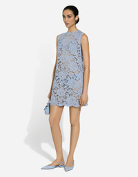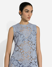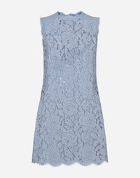 In the FW 24/25 DNA Collection, the rules of classic tailoring have been reworked with an innovative feel. New raschel weave techniques feature on micro-jackets and coats, and original textures are woven on trench coats, skirts, jacquard suits and shirts. The color palette made up of Nero Sicilia black, Milky White and Ocean Blue is also original. The iconic bags in fine nappa leather and “Pyton FC Machine” finish off the looks. Sleeveless floral lace A-line dress with DG logo: • Light blue • Round neck • Sleeveless • Stretch silk crepe de chine slip dress • Rear zipper and hook-and-eye fastening • The piece measures 45 cm from the waist down on a size IT 40 • The model is 175 cm tall and wears a size IT 40 • Made in Italy External composition: 39% Viscose 36% Cotton 25% Polyamide Internal composition: 91% Silk 09% Spandex